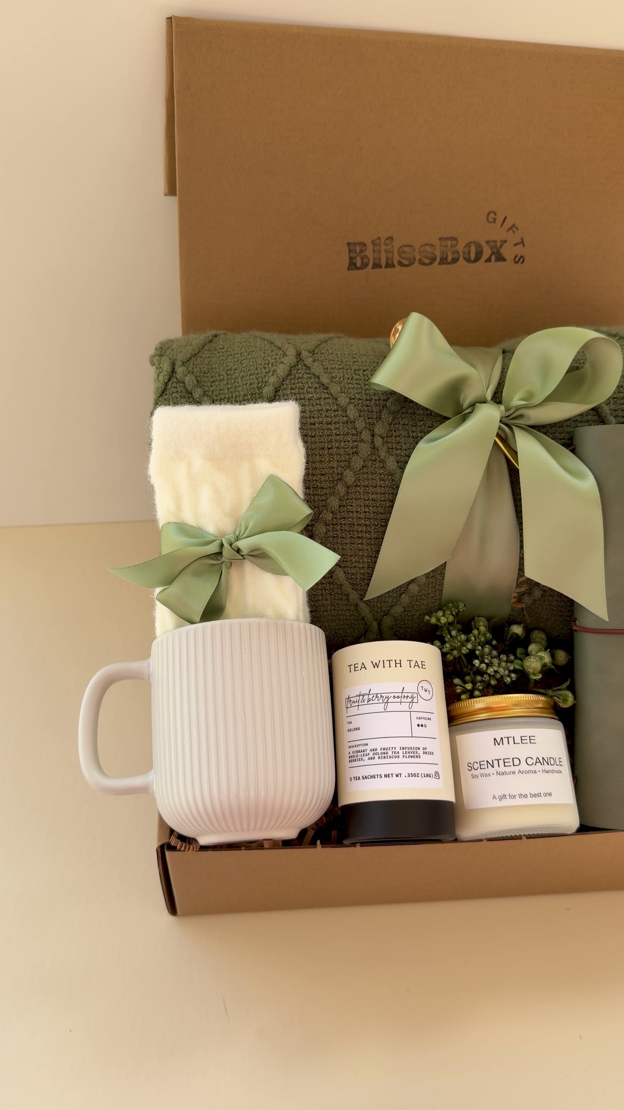 Olive Nest Box - Premium Spa Gift Box with Cozy Blanket, Tea & Gourmet Treats