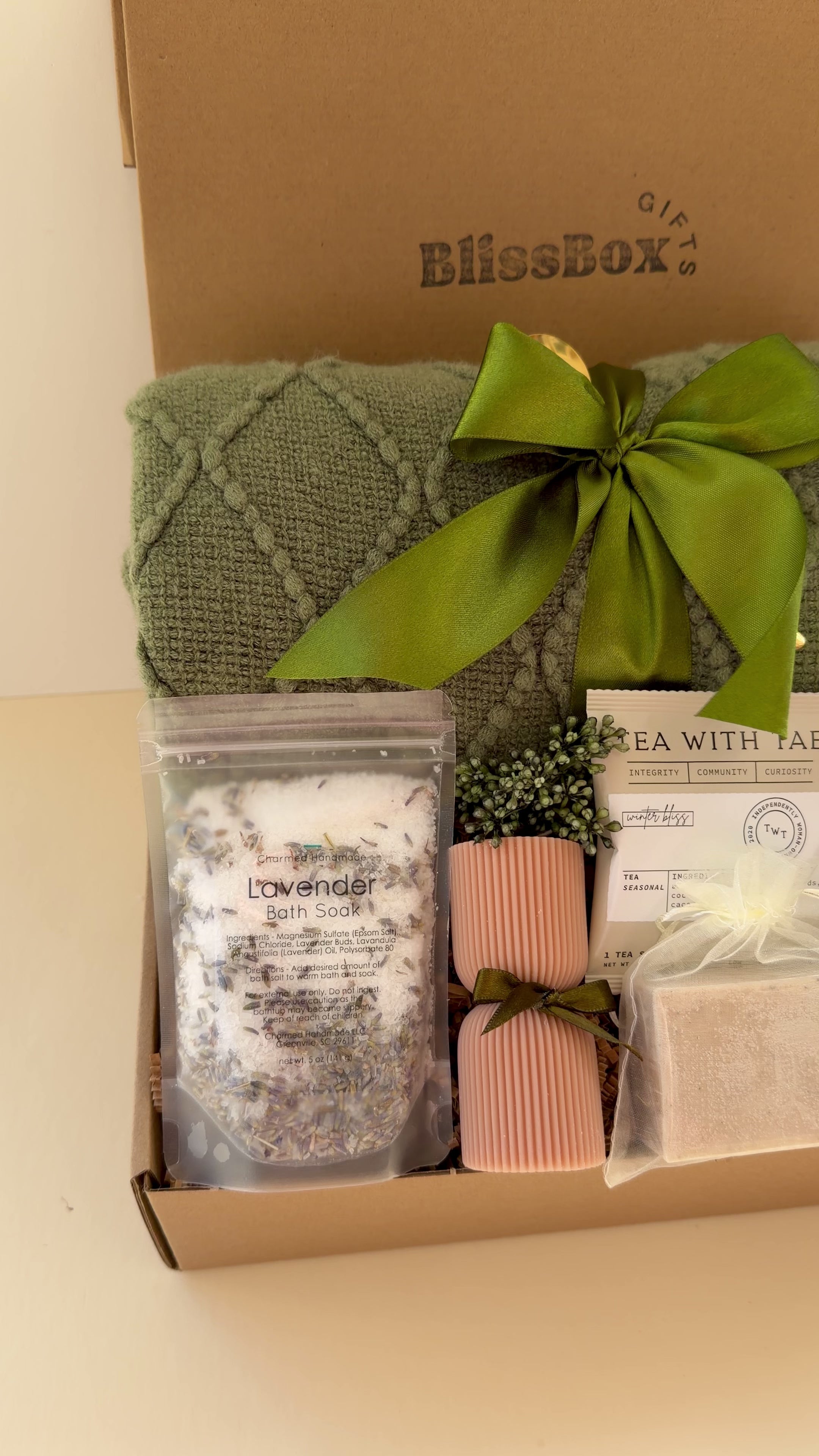 Olive Nest Box - Premium Spa Gift Box with Cozy Blanket, Tea & Gourmet Treats